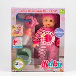 Juego de muñecas de bebé con accesorios y funciones, presiona el botón y harà ruidos realistas, el regalo perfecto, estimula la imaginación, juego de rol, juguete educativo, a tu hija le encantará cuidar,vestir y alimentar a su nuevo bebé, fabricado en material seguro y de calidad, no tóxico, utiliza 3 pilas AG13, dimensiones del producto 27x11.5x32.5cm. Edad reomendada de uso mayor de 3 años.