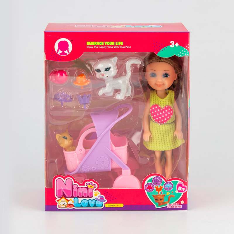 Adorable muñeca fashion mini con acesorios y mascota, diseñada con materiales de calidad, hermoso atuendo, su extructura garantiza que la infante pueda jugar en cualquier lugar, interior o exterior sin preocuparse, fáciles de lavar, promueve la creatividad e imaginación, perfecta para fomentar el juego de rol, incluye 1 cachorro,1 casita de animales, 1 gato, 1 corona, 2 sombreros, 1 gancho para cabello, dimensiones del producto 15.3x7.5x18.8cm. Edad recomendada de uso mayor de 3 años.