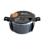 Olla alta Volcano de 24 cm con tapa, fabricada en aluminio forjado con 4 mm de espesor para una distribución eficiente del calor. El recubrimiento de 4 capas reforzadas proporciona una superficie antiadherente de larga duración. Incluye tapa ajustada y mango de baquelita resistente al calor. Apto para lavavajillas y se recomienda utilizar utensilios de cocina no metálicos para preservar la superficie antiadherente. No es compatible con cocinas de inducción.