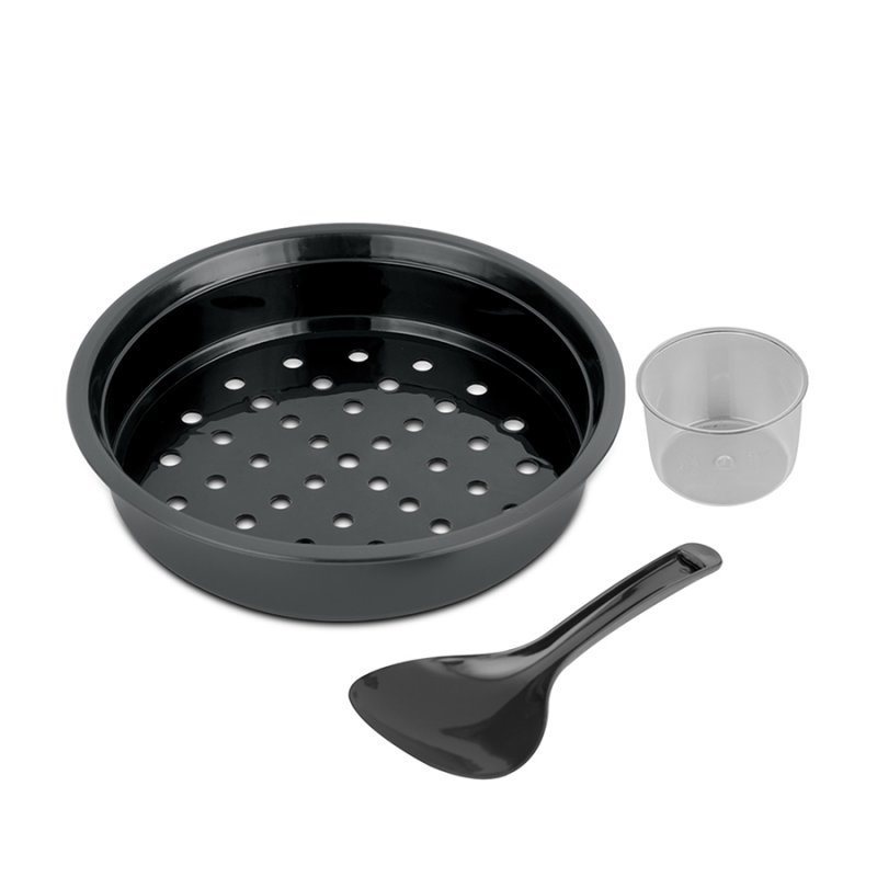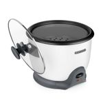 Olla arrocera Capacidad 20 tazas cocidas Recipiente antiadherente removible y duradero Función de mantener caliente los alimentos Tapa de vidrio templado Cesta para Cocción al vapor. 2 Años de Garantía
