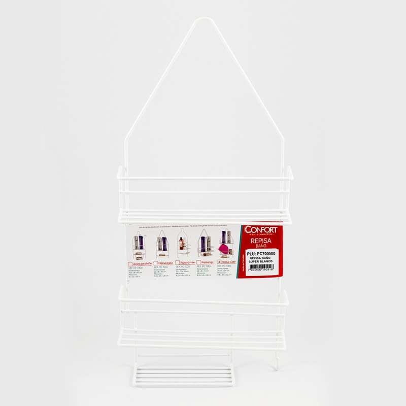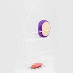Organizdor para baño, metalico , dos niveles, presenta un diseño tipo canastilla y una jabonera integrada. Este versátil organizador no solo ofrece amplio espacio para mantener tus elementos esenciales en orden, sino que también incluye un práctico gancho auxiliar para mayor conveniencia. Acabado plastificado blanco, resistente a la humedad, aireado y brillante.
