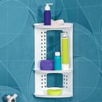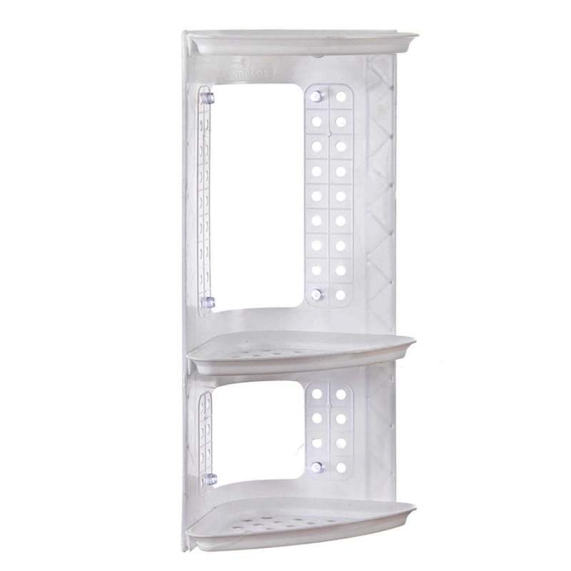 Organizador de baño plastico esquinero, 2 niveles, color blanco, ideal para que tengas tu baño organizado