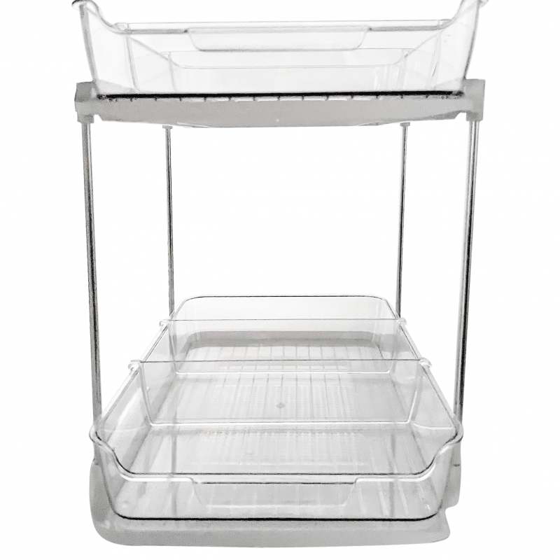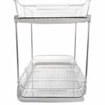 Ideal para una organización clara y accesible, el organizador de 2 niveles de 25x21x33cm transparente permite ver y acceder fácilmente a tus artículos, perfecto para baños o cocinas.