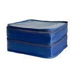 Ideal para una organización óptima, el organizador de equipaje doble azul proporciona espacio extra y está hecho de materiales resistentes para un uso prolongado.