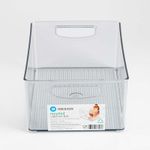 Organizador Interdesign. Cuadrado con asas en dos de sus lados. Fabricado en acrílico transparente. Mide: 20.03 x 20.04 x 12.07 cm, es liviano y resistente con un peso aproximado de 0.48 Kgs. Su diseño funcional y duradero facilita el almacenamiento de diversos artículos, aportando orden y visibilidad. Ideal para cocina, nevera, alacenas entre muchos otros.