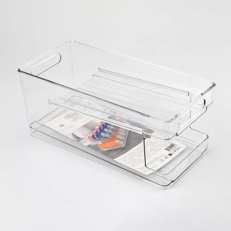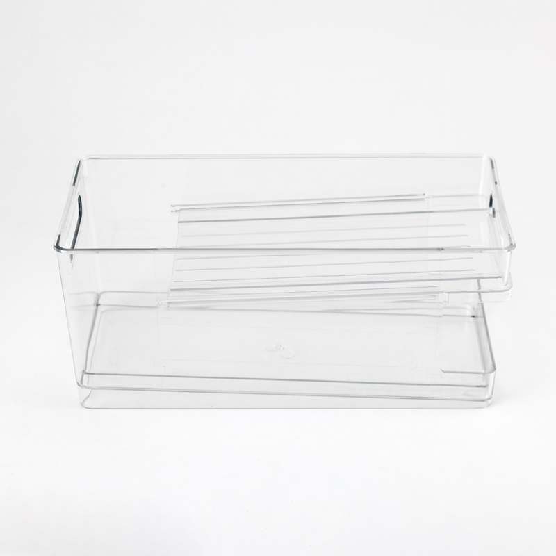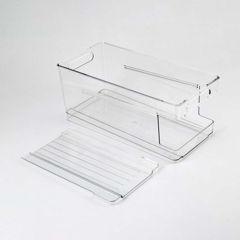 Organizador Nevera para Latas Dos Niveles, Transparente en Plástico, dimensiones: 35.5 x 16.5 x 15.3 cm. Peso: 690 Grs. Incluye asas superiores, lo que te permite mejor agarre. Guarda las latas de forma estable y organizada, ahorrando espacio en el refrigerador, y con visibilidad al contenido.