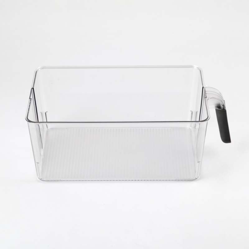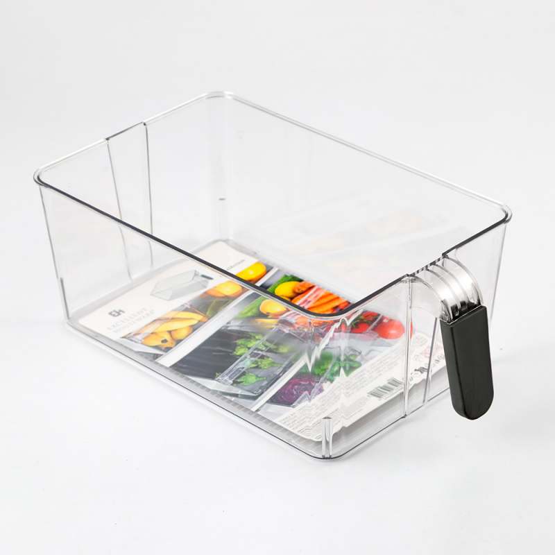 Organizador Nevera rectangular, Transparente en plástico, Medidas 31 x 18 x 11 cm. Peso: 380 Grs. Con mango de Silicona. • Recipiente de cocina para almacenar alimentos. Especialmente útil en el refrigerador para organizar verduras, frutas y otros productos. • Mantiene los productos almacenados organizados y permite un acceso cómodo. • Cuenta con una práctica asa que facilita su transporte y extracción. Organizador de nevera para guardar alimentos. Su diseño transparente permite ver fácilmente el contenido. Es fácil de limpiar y cómodo de usar gracias a su práctica asa.