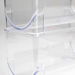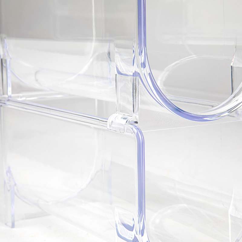 Organizador para botellas transparente. Cada estante tiene capacidad para una botella de vino o bebidas embotelladas para encimeras organizadas de nevera y cocina, mesas, despensas, armarios, comedores. Las botellas se almacenan horizontalmente en compartimentos individuales Dimensiones:10x20x10,3cm