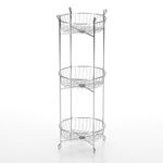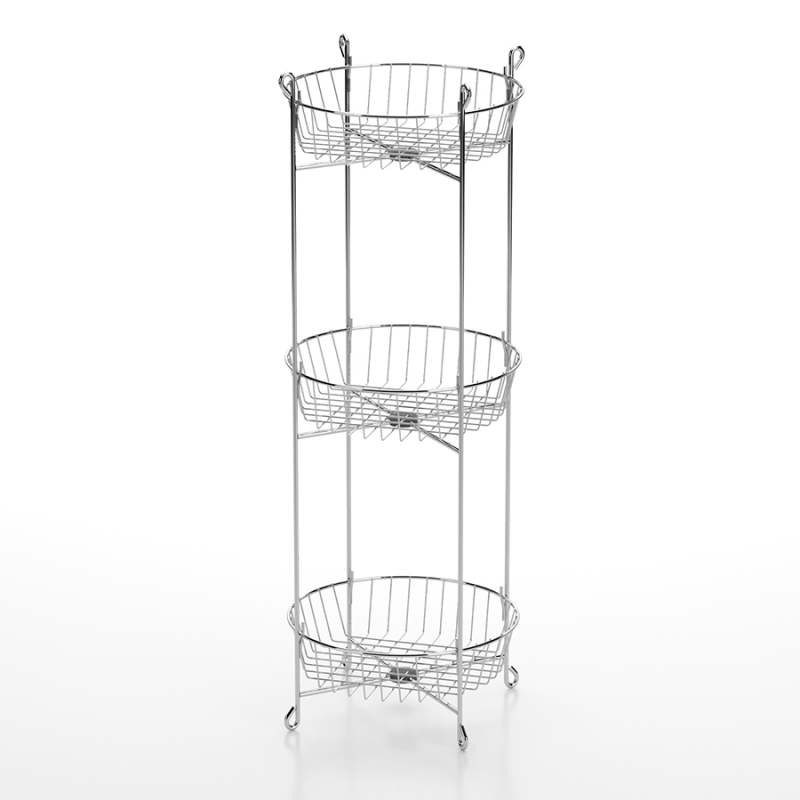 Organizador para cocina MG013 de tres niveles con forma de canasta, facil de armar, sin tornillos Material: Metal Color: Crómo Alto: 72Cmts Ancho: 35Cmts Profundo: 35Cmts