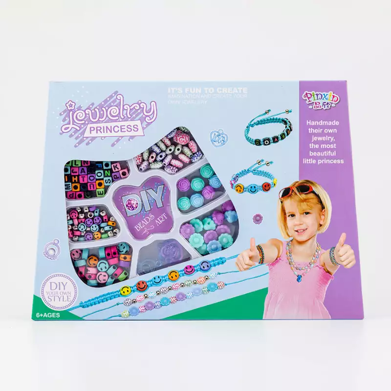Fabricación de joyería armable para niñas, kit de más de 129 cuentitas de colores, 3 cuerdas, divertido y perfecto para que tu hija pueda crear joyas únicas que les encantarán a todos, manualidad y creatividad sin lìmites, fábricado en plástico de alta calidad no tóxico, los kits de joyas mejoran las habilidades motoras finas de la infante, en el proceso de creación estimulan la imaginación a través de la selección de diversidad de formas y colores, sobre todo proporcionan horas de entretenimiendo e interacción padres e hijos, dimensiones del producto 28x3.5x20cm. Edad recomendada de uso mayor de 6 años.