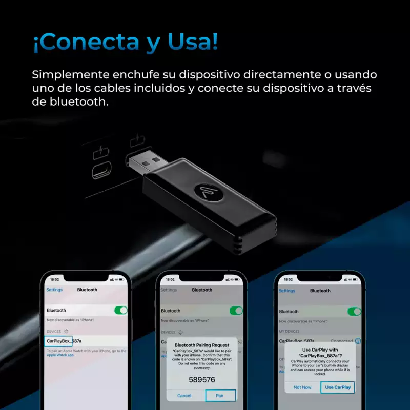 Transforma Carplay Alámbrico De Fábrica En Inalámbrico, Permitiendo Al Usuario Acceder A Sus Aplicaciones Favoritas, Llamar, Enviar Mensajes De Texto Y Navegar Sin Cables. (Edición Micro Pus)