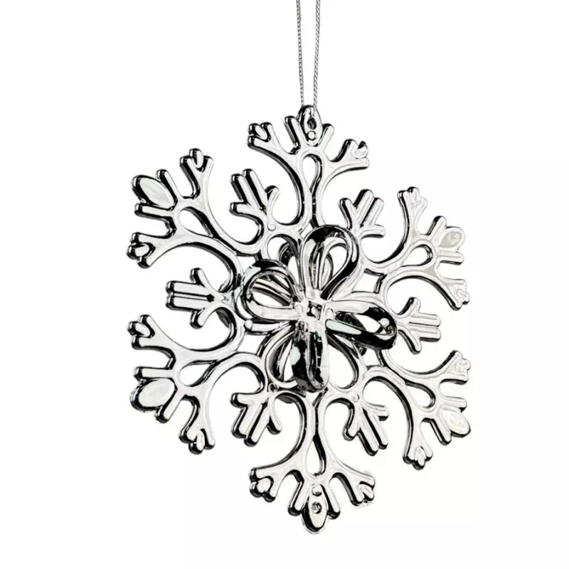 Adorno para árbol santini copo de nieve de 15x3 cm, color plateado, en plástico. Perfecto para estilos sobrios y sofisticados.