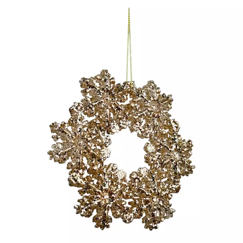 Adorno para árbol santini, color dorado, elaborado en acrílico. Aporta un toque elegante y translúcido al árbol navideño.