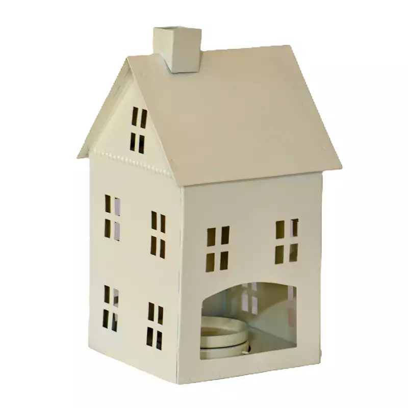 Candelabro navideño, terminacion matte color crema, material hierro, medidas: 13x13x26 cm. No toque el producto mientras la vela esté encendida.