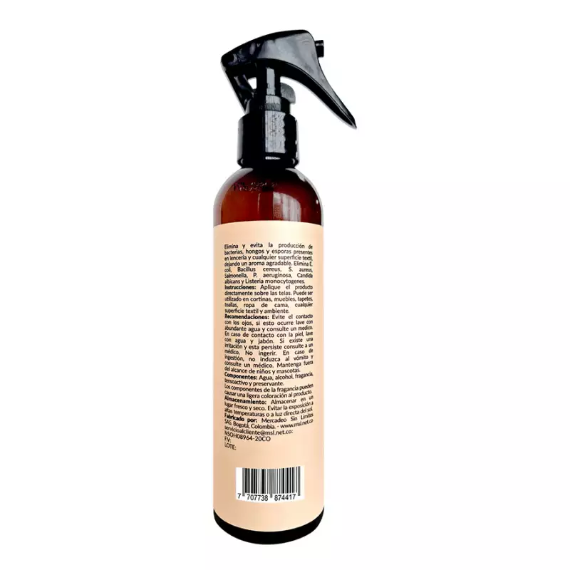 Elimina y evita la producción de bacterias, hongos y esporas presentes en lenceria, cualquier superficie textil, dejando un aroma agradable, brindando la sensacion en el ambiente de naturalidad.