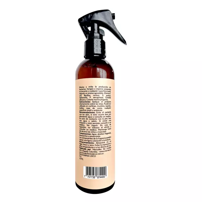 Elimina y evita la producción de bacterias, hongos y esporas presentes en lenceria, cualquier superficie textil, dejando un aroma agradable, brindando la sensacion en el ambiente moderno e innovador.
