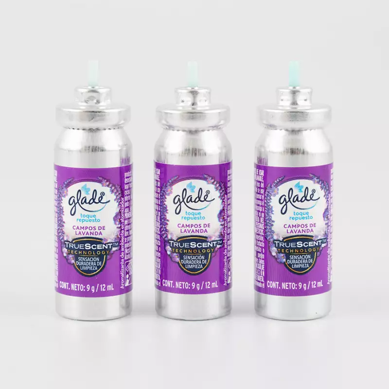 Set de tres repuestos de ambientador para hogar, elaborado con propelente hidrocarburo, alcohol etílico y fragancia, ideal para todo tipo de ambientes en el hogar, aroma a campos de lavanda, elimina efectivamente malos olores, cada aromatizante contiene 12ml, prácticos, para sistema atomizador, de fácil uso.