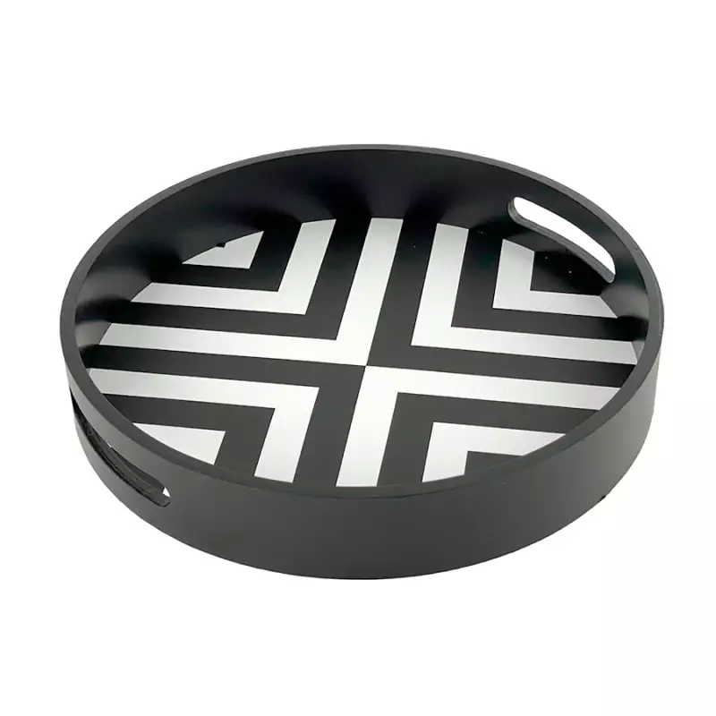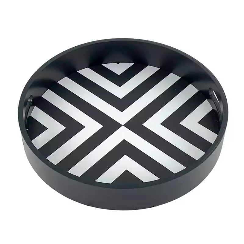 Bandeja decorativa Monocromía 30×5×30 cm, elaborada en MDF con diseño de líneas en blanco y negro. Su formato cuadrado y profundidad media la convierten en una pieza funcional y decorativa para organizar accesorios o destacar elementos sobre mesas y superficies auxiliares. El contraste gráfico de tonos neutros realza su estética contemporánea, ideal para ambientes modernos, sobrios o de inspiración visual.
