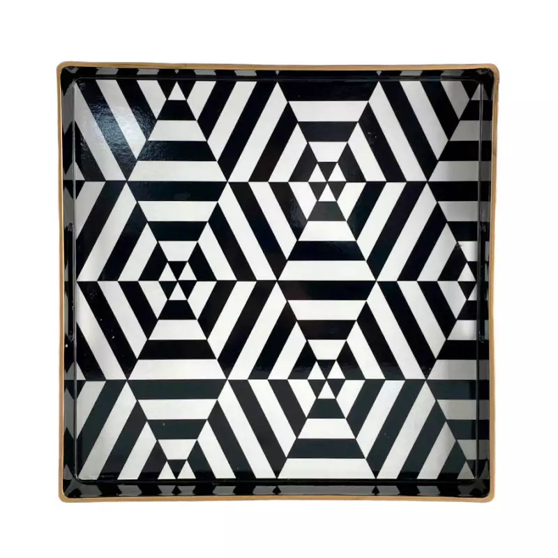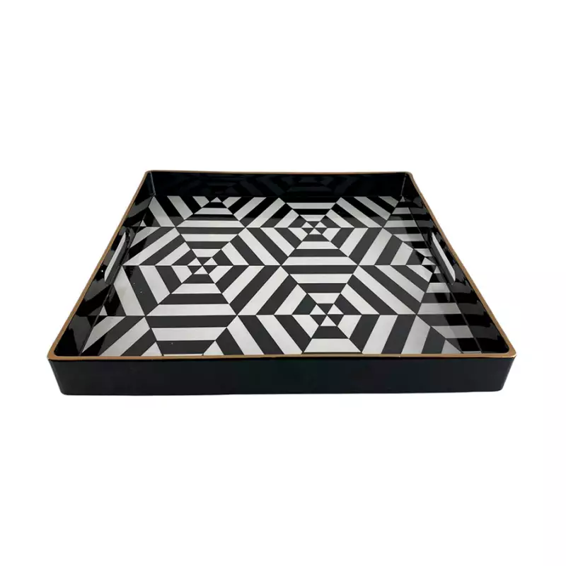 Bandeja Deco Concepts Monocromia 35X4X35Cm Blanco Negro Plastic