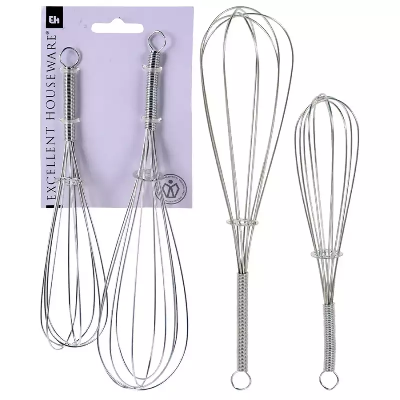 Batidor excellent houseware set X2 cy4653260. Juego de batidores 2 piezas, acero inoxidable, tamaño 24 cm y 19 cm, peso total establecido 58 gramos,
