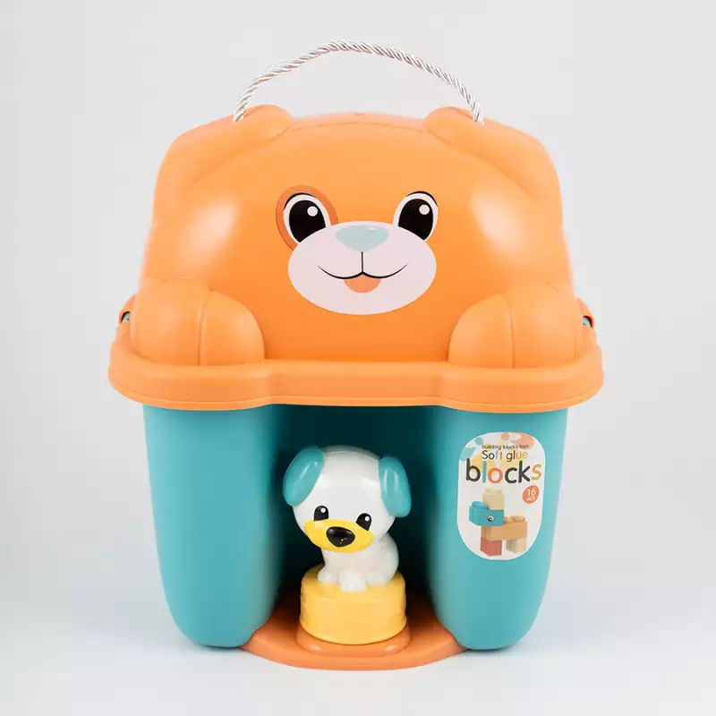 Bloques flexibles armables, ofrece las mejores experiencias de juego, fomenta la creatividad, promueve el entretenimiento lógico y critico, habilidad motora fina, cultiva habilidades de observación, cuenta con colores muy llamativos, incluye 1 hermosa caja organizadora diseño perrito, fabricada de plástico de alta calidad, 1 manual instrucciones, 1 sticker, 16 bloques, dimensiones del producto 24x17.6x26cm. Edad recomendada de uso mayor de 18 meses.