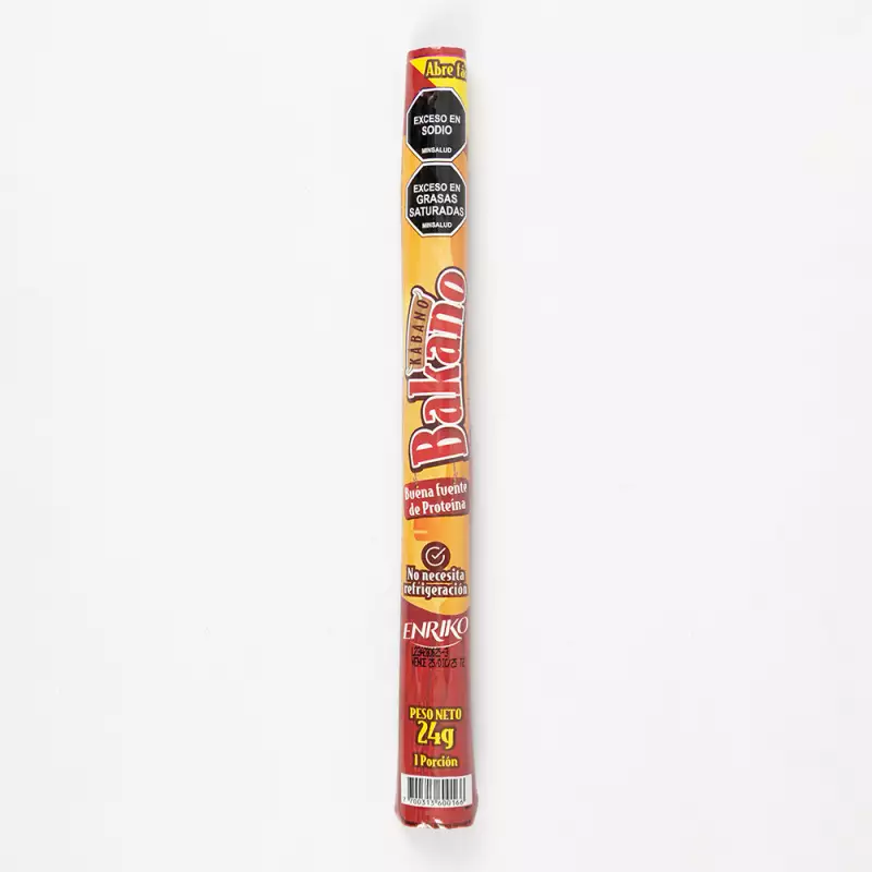Snack cárnico con buena fuente de proteína Kábano Bakano ahumado, compuesto por res, cerdo y pollo, es ideal para cualquier momento del día, lo puedes llevar a todas partes ya que no necesita refrigeración,con abre fácil. Listo para el consumo.