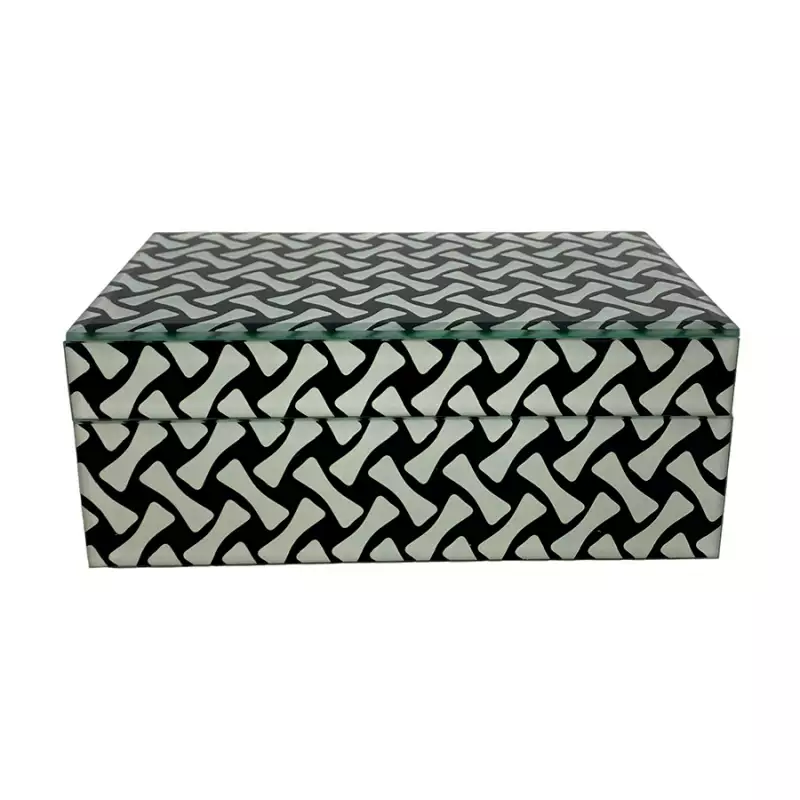 Caja Deco Concepts Monocromia 20X8X12Cm Blanco Negro Vidrio 45