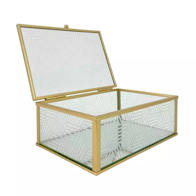 Caja Decorativa Concepts Rose Blush en vidrio color dorado, perfecta para sumar un detalle refinado y funcional a tu decoración. Con medidas de 15x6,5x10 cm, es ideal para organizar joyas, llaves u otros objetos pequeños con estilo. Su diseño compacto y elegante realza cualquier superficie, aportando brillo y personalidad a espacios como tocadores, escritorios o mesas auxiliares.