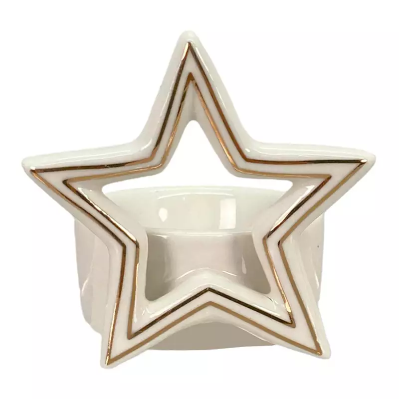 Candelabro navideño de estrella Santini 7X7Cm, Material Porcelana Color blanco