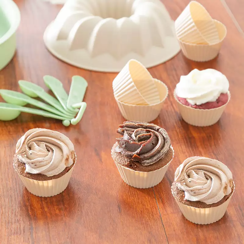 Úsalo para hornear Cupcakes, molde de gelatina y helado, se puede poner en el horno, microondas, refrigerador o congelador.