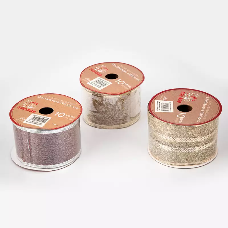 Cinta Navideña Natural Surtido, medidas: 6Cmx10Yds, material: Poliester, Color: Natural Los productos marcados como 'PRODUCTO SURTIDO' pueden no ser idénticos a los que aparecen publicados en las imágenes. Las imágenes son ilustrativas. Al comprar un producto identificado como producto surtido, aceptas que podrás recibir un producto con características y atributos tangibles diferentes a los que aparecen en las imágenes del sitio o la publicidad. Los productos surtidos mantendrán las propiedades físicas, químicas y técnicas necesarias para su funcionamiento y uso de acuerdo a su naturaleza.