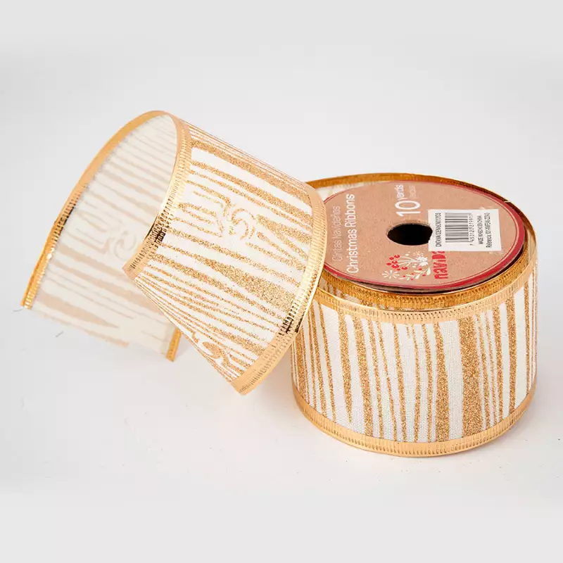 Cinta Navideña Surtido, medida: 6Cmx10Yds, material: Poliester, Color: Natural