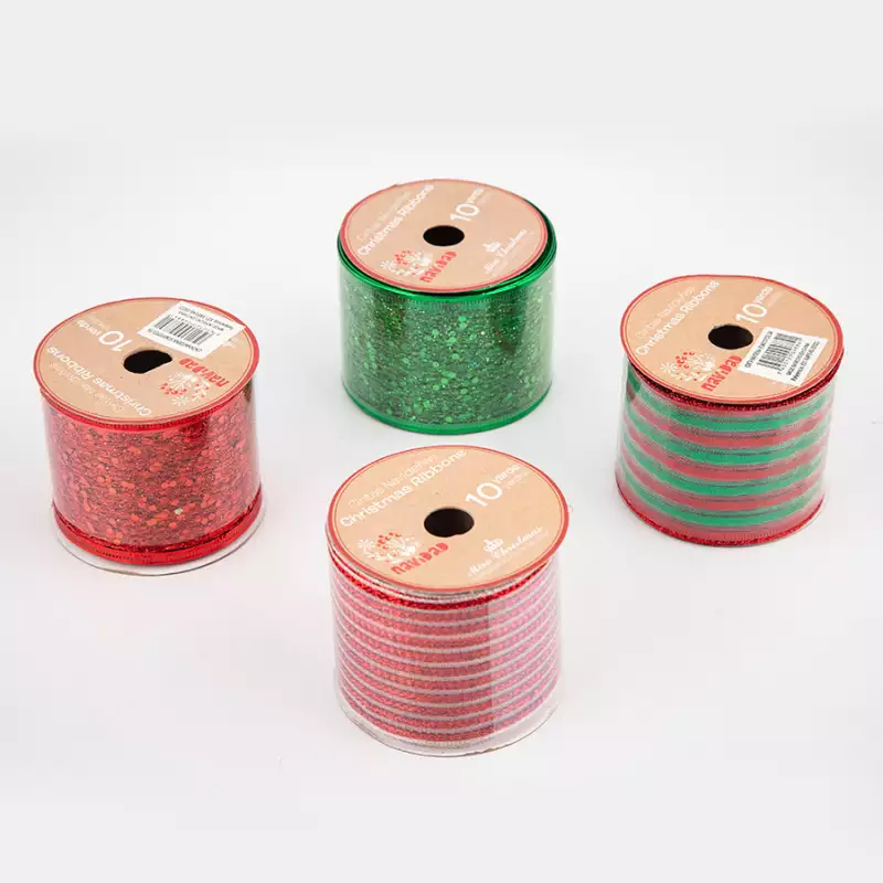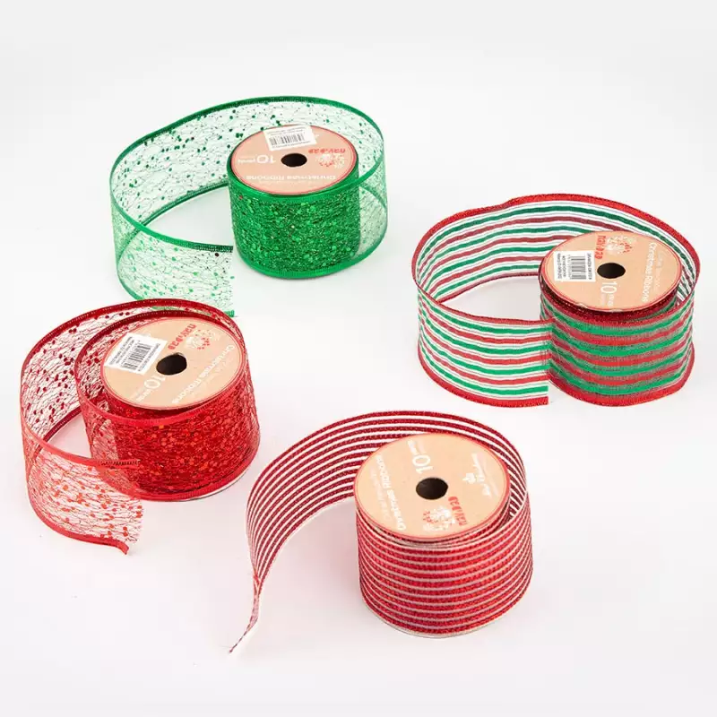 Cinta Navideña Surtido, medidas: 6Cmx10Yds, material: Poliester, Color: Rojo-Verde