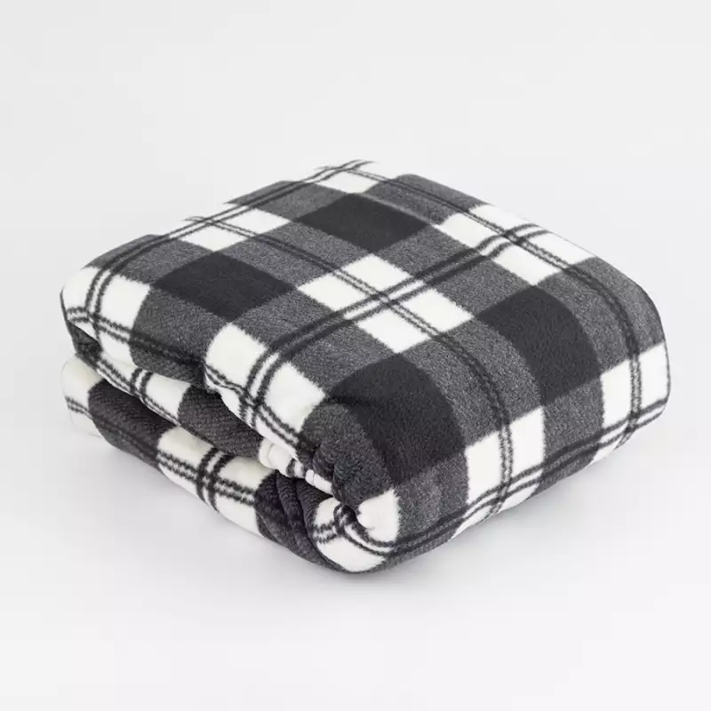 Cobija para cama doble en medida de 180x220 cm, en tela polar cuadros negro , 270 gr.