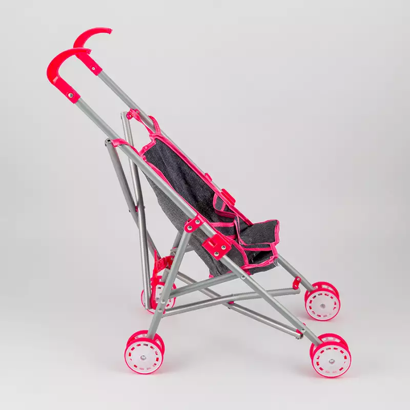 Elegante cochecito para muñecas con ruedas giratorias, tu bebé jugará durante horas y usará su imaginación con este hermoso cochecito, está fábricado de plástico de calidad, tela y metal, es plegable de fácil almacenamiento, no ocupará espacio cuando no este en uso, ligero y duradero, dimensiones del producto 30 cm. Edad recomendada de uso mayor de 3 años.