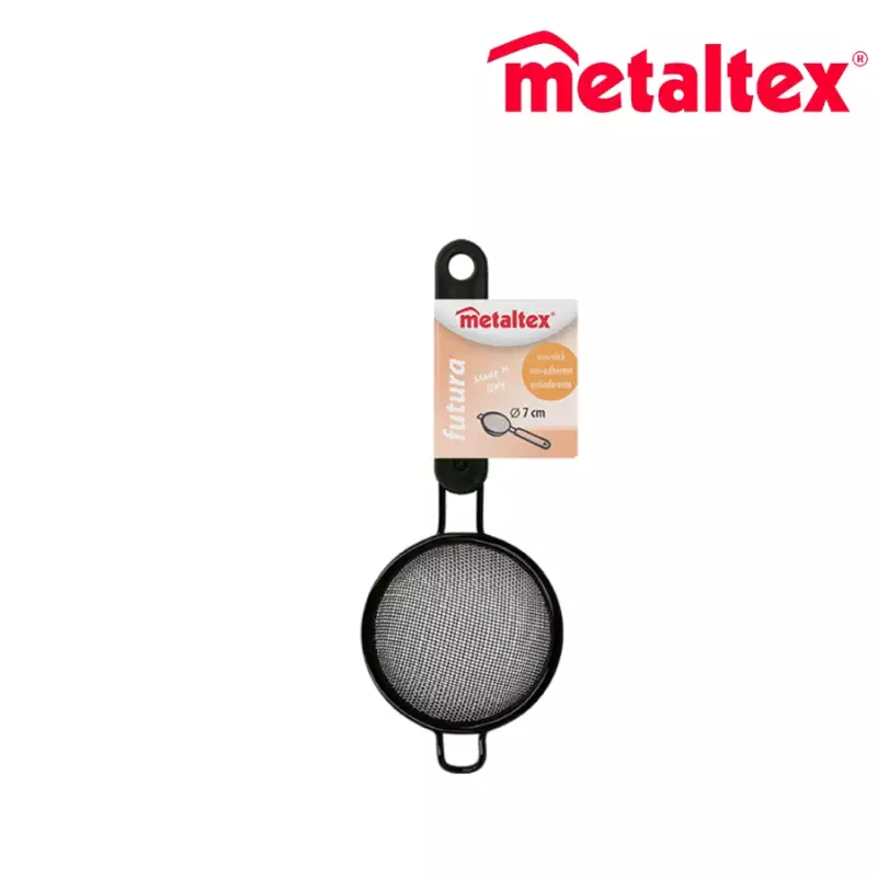 Colador Suizo Metaltex , diámetro 7 cm, diseñado con materiales resistentes, Capa Antiadherente evitando que los alimentos se queden pegados al colador, soporta el uso intensivo y proporciona un rendimiento constante en tu cocina. Este colador compacto es perfecto para tareas precisas, como colar especias, hierbas o pequeñas cantidades de ingredientes..