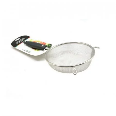 Fabricado totalmente en acero inoxidable. Mango elaborado en plástico antiadherente gris de moderno y atractivo diseño. Ideal para colar pulpa de frutas, y separar fácilmente las semillas y residuos de estas. Fácil de limpiar y almacenar.