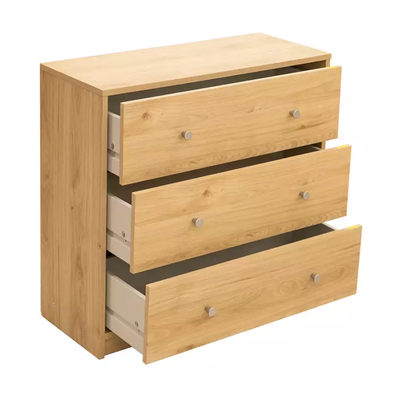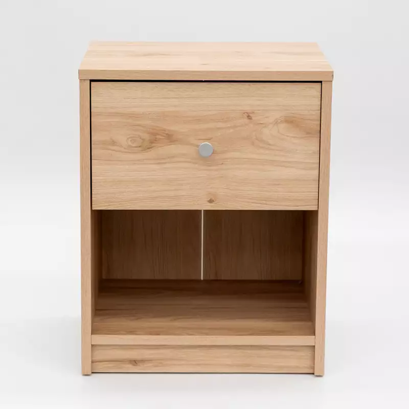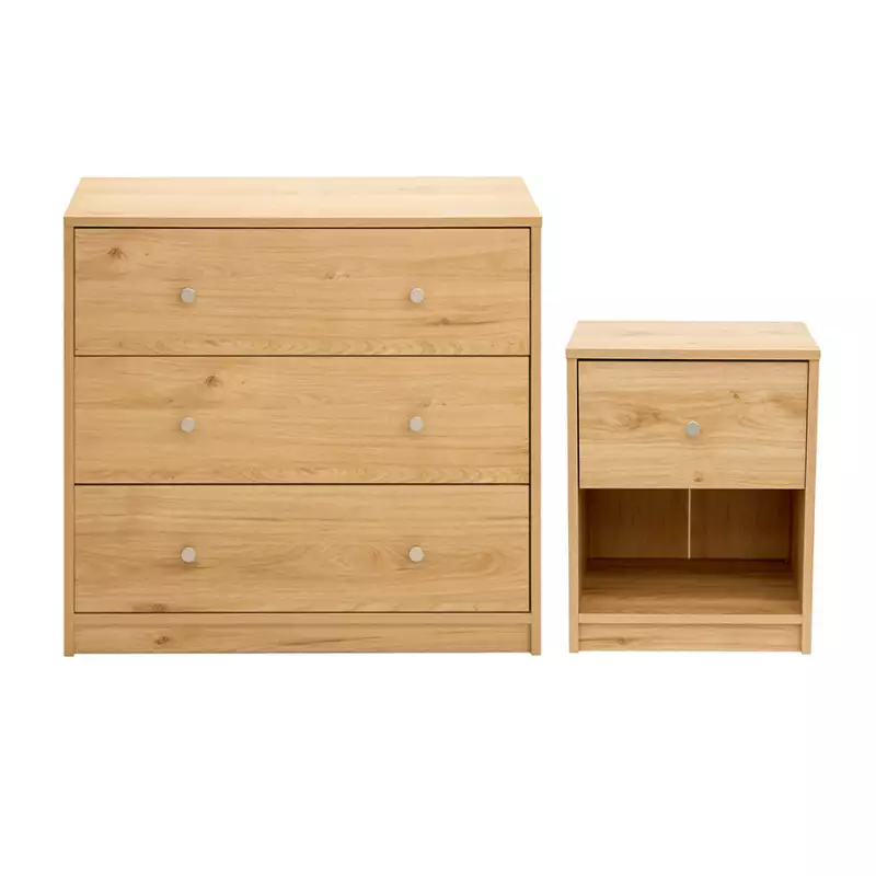 La cómoda May es la solución ideal para espacios reducidos. Con tres cajones, esta cómoda combina funcionalidad con un diseño limpio y minimalista + La mesa de noche May es la solución perfecta para espacios pequeños. Cuenta con un cajón y espacio de almacenamiento adicional debajo, complementando cualquier decoración con su diseño simple.