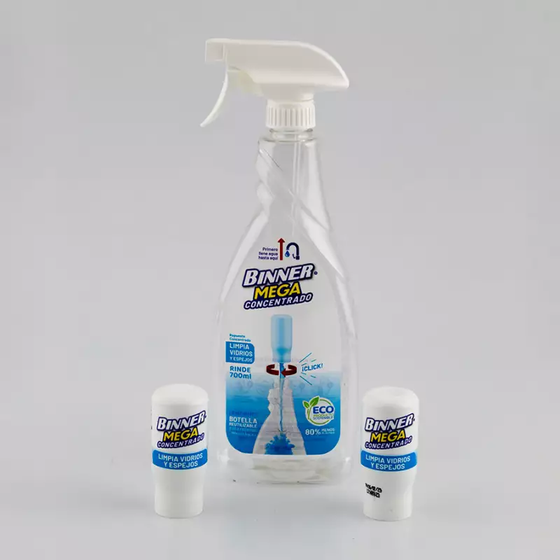 Limpiador concentrado para vidrios, deja superficies transparentes y sin marcas.