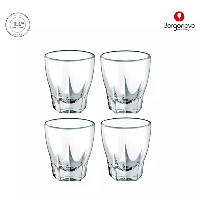 Disfruta de cada brindis con el Set de Shots Camelot de Borgonovo, diseñado para resaltar el sabor y la presentación de tus licores favoritos. Fabricados en Italia con vidrio de alta resistencia, estos shot son 30% más duraderos, con un brillo excepcional y una transparencia impecable. Su diseño sofisticado y ergonómico los hace ideales para tequila, whisky, licores y más. * Incluye: Set de 4 vasos shot * Material: Vidrio extra resistente * Origen: Italia * Características: Más brillante, más transparente y 30% más resistente