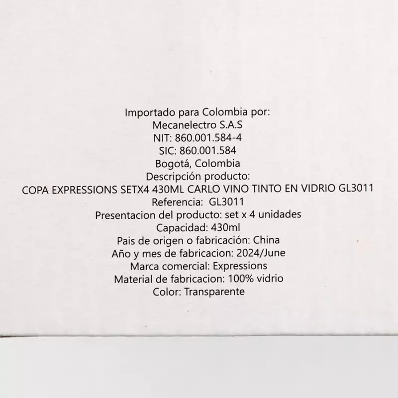 Copa Vino Tinto Expressions 430 Ml 8 Ud Vidrio Gl3011