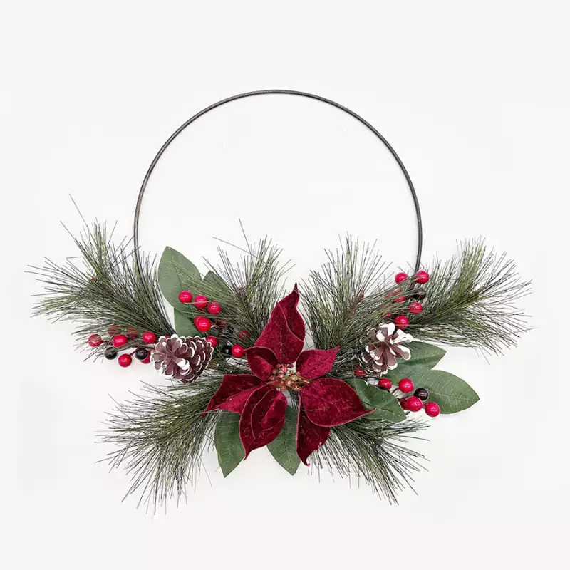 Corona 40cm. Base alambre. Modelo Poinsettia. Color rojo No es un juguete, no acercar el producto al fuego