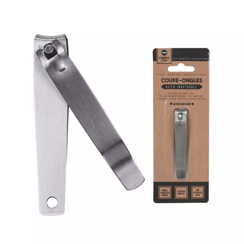 Corta uñas. Marca: cosmetic club. Medidas: 1,8x1,5x8cm. Material: Acero inoxidable. Colores: Plateado. Este cortaúñas de acero inoxidable es perfecto para las uñas gruesas. El modelo no se oxida. Permite un corte limpio y un control óptimo.