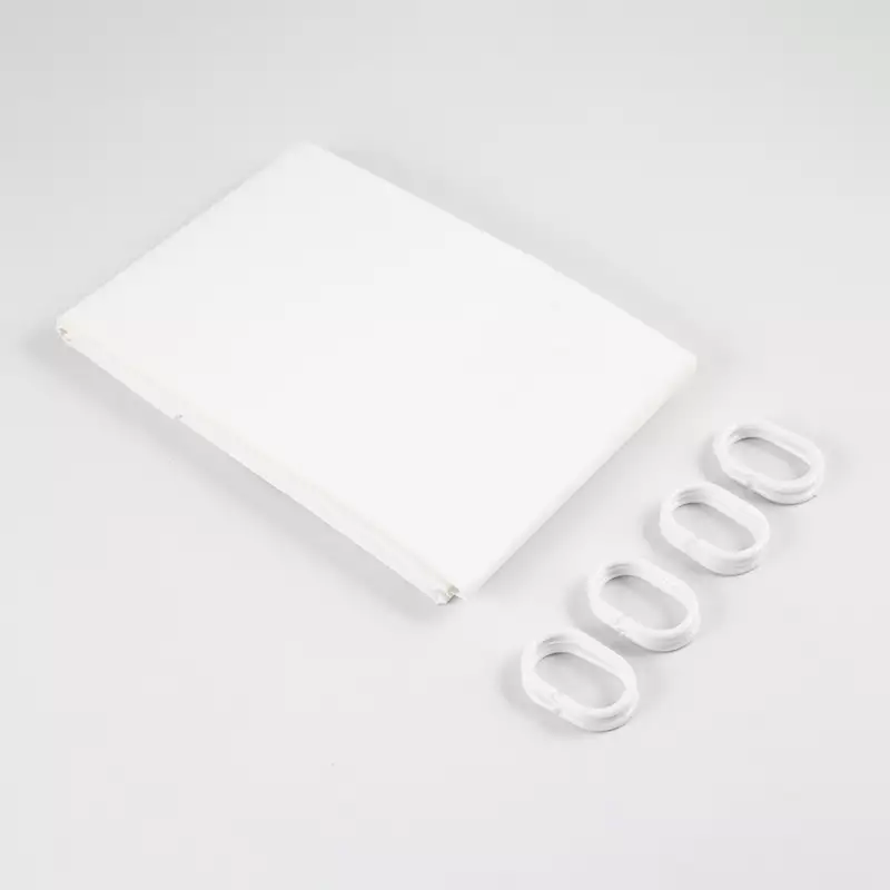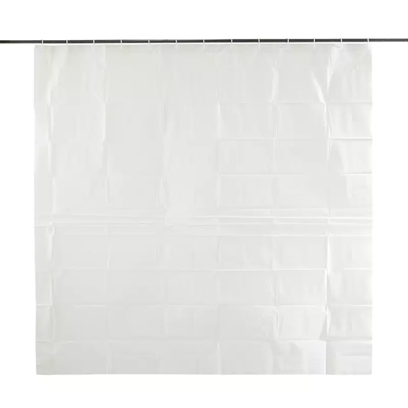 Cortina de baño en color blanco, fabricada en polietileno con medidas de 180x180 cm, ideal para agregar un toque moderno al baño.