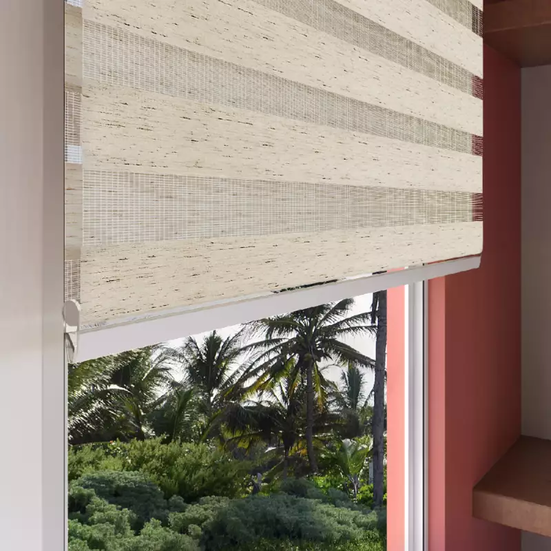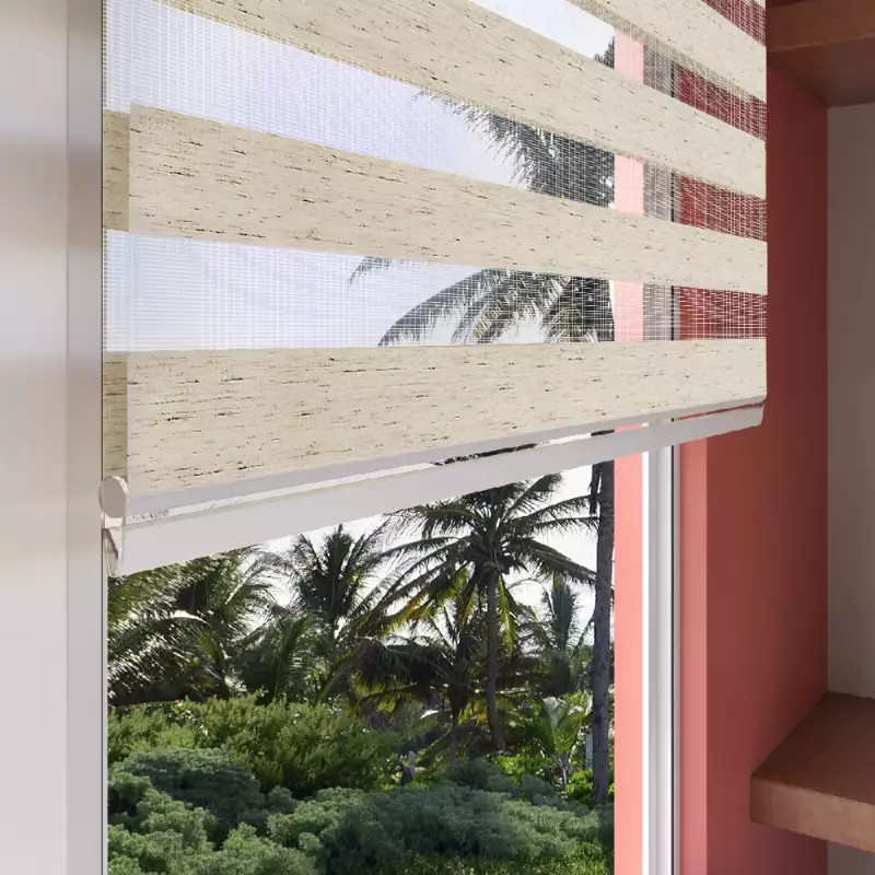 Es Fabricada En Tela 100% Poliéster: Una Fibra Sintética, Durable Que No Se Encoge O Deforma Con Facilidad. Su Tela La Conforman Franjas Traslúcidas Y Sólidas Que Se Intercalan Entre Sí Permitiendo El Control De La Luz Y La Privacidad En Los Espacios. Las Franjas Opacas Horizontales De Miden 8 Cm De Alto Y Sus Franjas Traslúcidas 7 Cm Aproximadamente. La Tela Es 3 Cm Aproximadamente Más Angosta Que La Medida Final De La Cortina: 1,5 De Lado Derecho Y 1,5 De Lado Izquierdo. Cuenta Con Un Mecanismo Manual A Cadena De Fácil Manipulación Que Sube Y Baja La Cortina.
