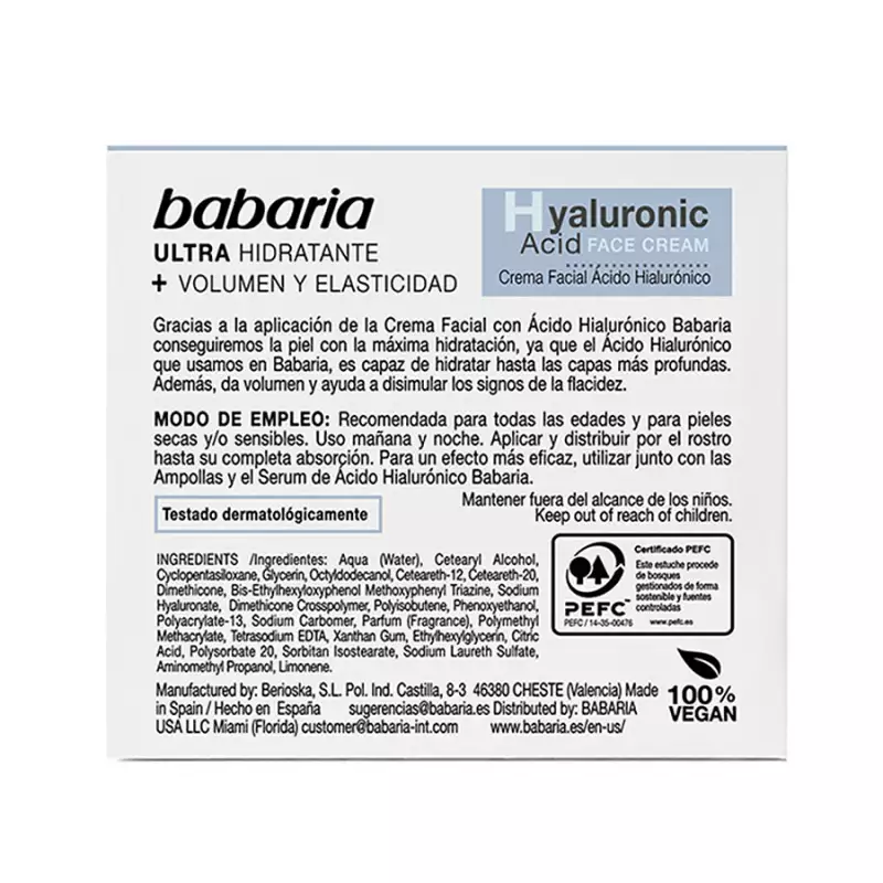 Inicio > CUIDADO PERSONAL > Cuidado Facial > Cremas y tratamientos > Crema Facial Babaria 31739 Acido Hialuronico 50 M