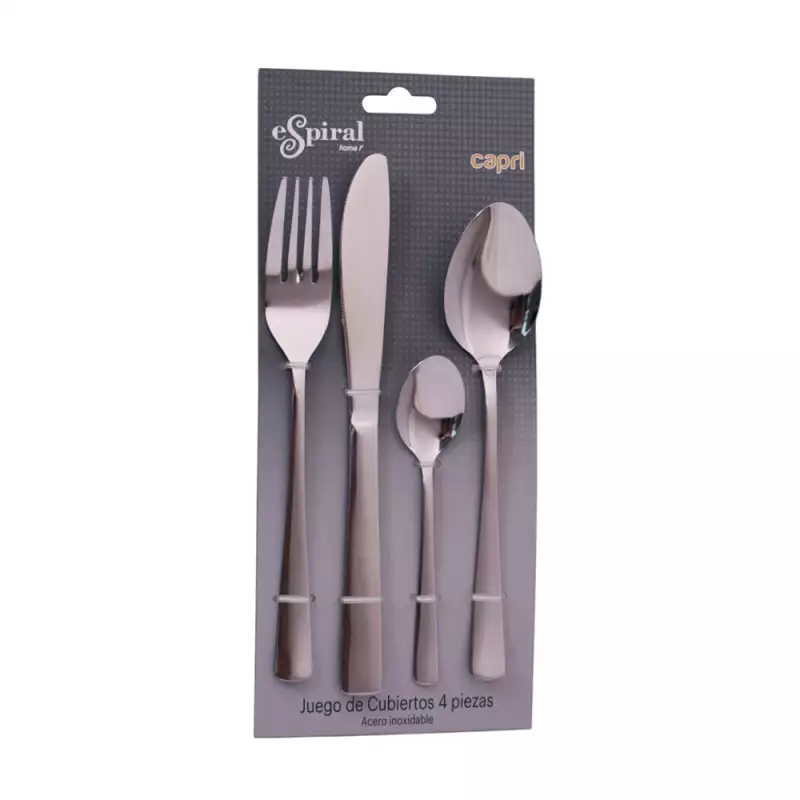 Juego De Cubiertos 4 Piezas Marca Espiral Ref Capri. Fabricado En Acero Inoxidable Altamente Resistente A Las Manchas Y A La Corrosión, Evite Presencia De Químicos Corrosivos Y Algunos Alimentos.