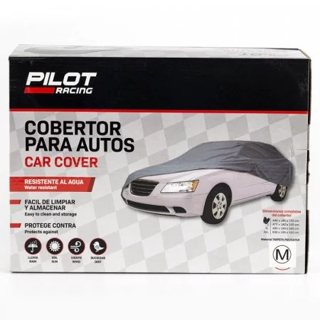 Cubreauto, marca Pilot Racing. Talla M. Medidas 440X180X150cm. Material Taffeta Polyester.