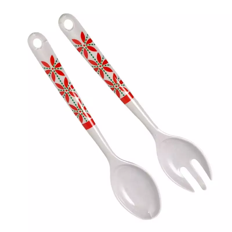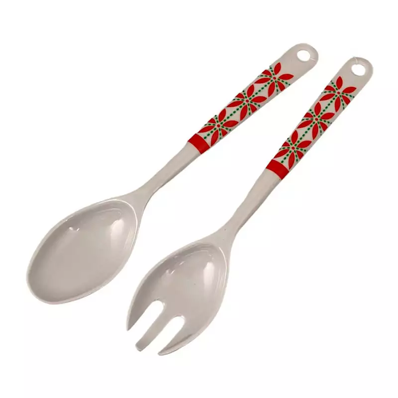 Cuchara+Tenedor Poinsettia Navideño 24Xcm Santini, Material: Urea Melamina Color: Blanco