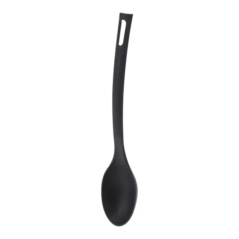 Cuchara para servir, Color Negro en Nylon, resistente al calor hasta 150 °C. Tamaño: Tamaño: 28.5 x 6 cm. Peso: 25 Grs. No raya las superficies, práctica y llena de estilo, cuenta con orificio en su mango para que lo puedas colgar tú utensilio de manera fácil.Para uso doméstico.